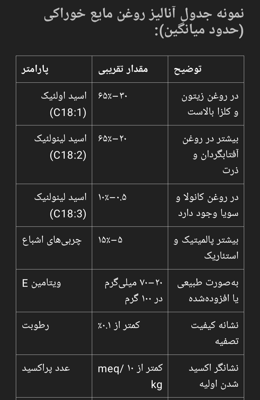 ✔ عدم تولید اسید چرب ترانس: برخلاف روغنهای جامد که در فرآیند هیدروژنه شدن چربی ترانس ایجاد میکنند، روغنهای مایع این مشکل را ندارند.